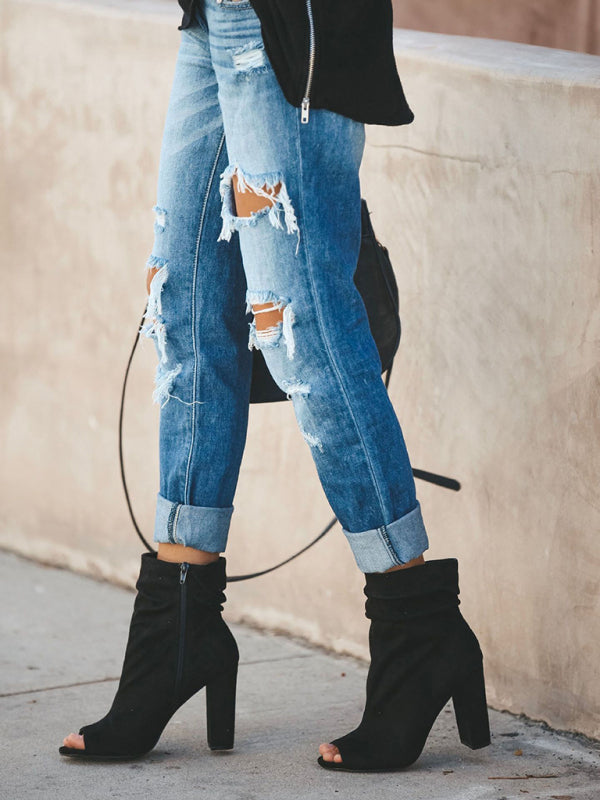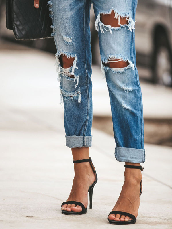 New casual washed ripped straight leg street style jeans