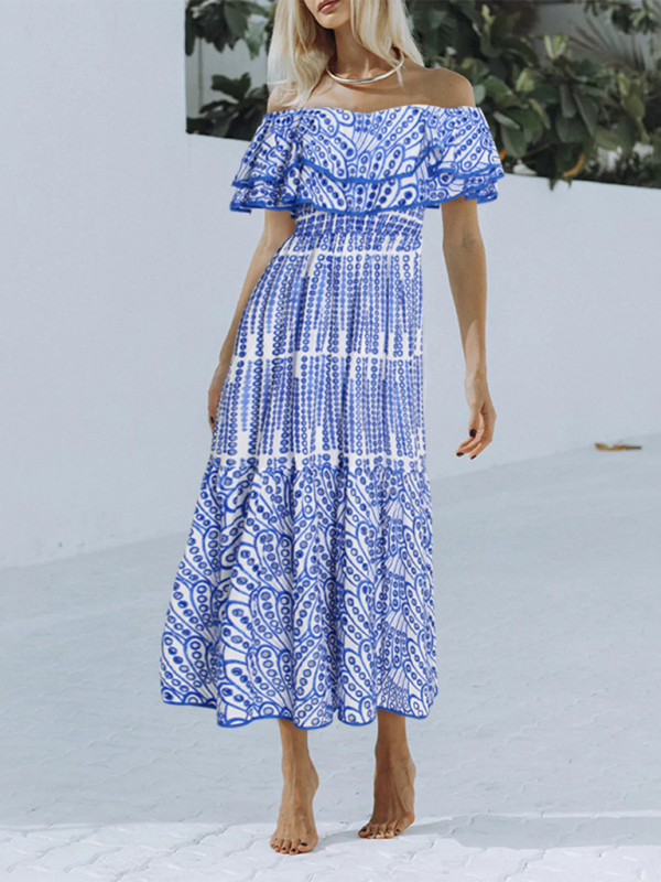 New Double-layer Lotus Leaf One-shoulder Embroidered Women's Long Dress
